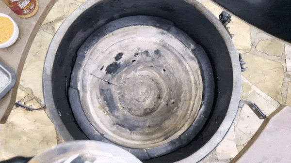 Simply place Ash Removal Pan under the Kick Ash Basket® inside your Kamado Grill.